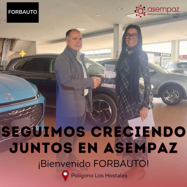 Damos la bienvenida a Forbauto , concesionario de coches nuevos y de ocasión ubicado en el Poligono Los Hostales, que se incorpora a nuestra asociación, para seguir sumando y fortaleciendo el tejido empresarial del Parque Empresarial La Paz.